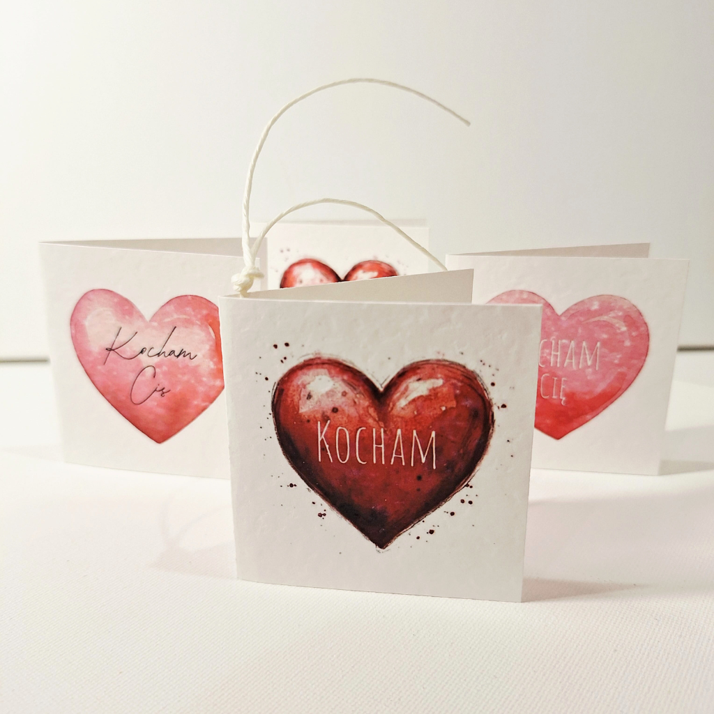 Bilecik – „Serce – Kocham” to uroczy bilecik, z nadrukowanym sercem i słowem Kocham Cię , to idealne dopełnienie każdego bukietu, flowerboxa, rośliny doniczkowej, lub jako dodatek pakowania prezentu dla osoby, którą darzy się uczuciem. To mały detal, który zmieni kwiaty w personalny i niezapomniany upominek. Doda uroku każdej kompozycji i sprawi, że kwiaty będą gotowe do wręczenia.