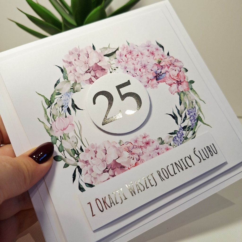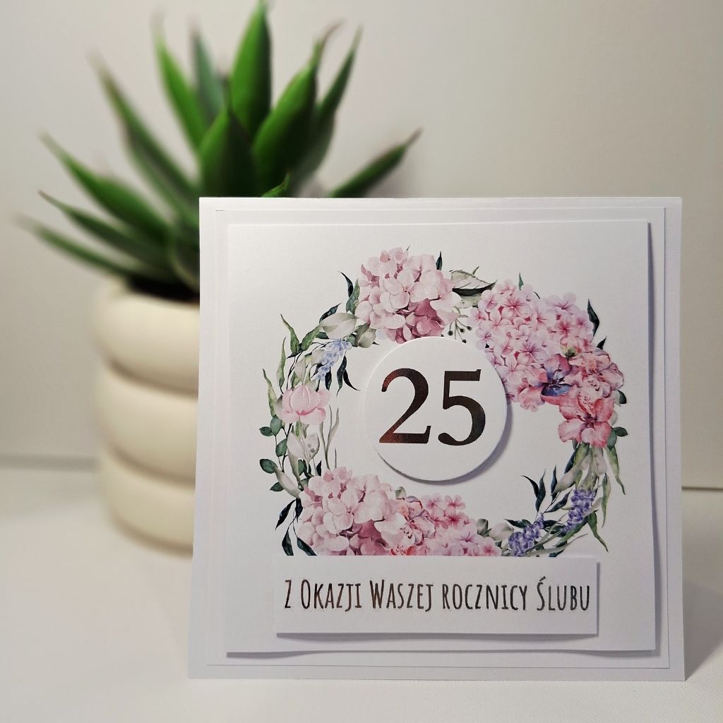 „Kartka Okolicznościowa – Z Okazji 25 Rocznicy Ślubu ” to elegancka, ręcznie robiona kartka, ze srebrnymi napisami, która pięknie podkreśli tę wyjątkową chwilę. Starannie dobrane kolory, subtelne zdobienia oraz elementy 3D nadają jej niepowtarzalnego charakteru. To idealny sposób, aby w wyjątkowy sposób przekazać swoje myśli i emocje – niezależnie od okazji.