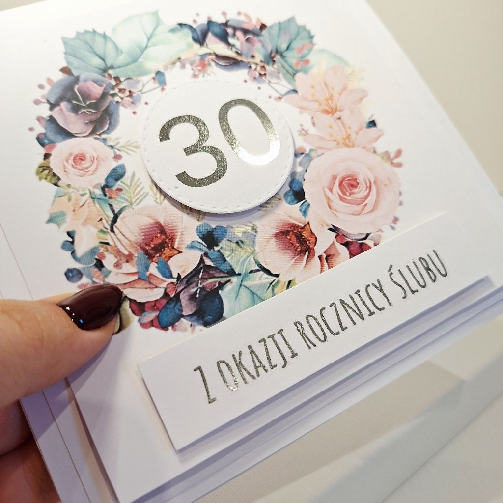 „Kartka Okolicznościowa – Z Okazji 30 Rocznicy Ślubu ” to elegancka, ręcznie robiona kartka, ze złotymi napisami, która pięknie podkreśli tę wyjątkową chwilę. Starannie dobrane kolory, subtelne zdobienia oraz elementy 3D nadają jej niepowtarzalnego charakteru. To idealny sposób, aby w wyjątkowy sposób przekazać swoje myśli i emocje – niezależnie od okazji.