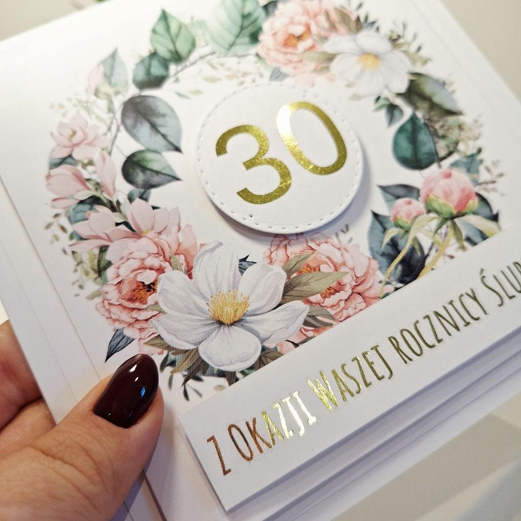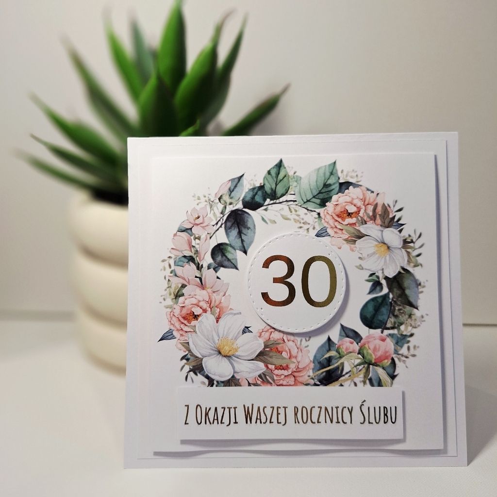 „Kartka Okolicznościowa – Z Okazji 30 Rocznicy Ślubu ” to elegancka, ręcznie robiona kartka, ze złotymi napisami, która pięknie podkreśli tę wyjątkową chwilę. Starannie dobrane kolory, subtelne zdobienia oraz elementy 3D nadają jej niepowtarzalnego charakteru. To idealny sposób, aby w wyjątkowy sposób przekazać swoje myśli i emocje – niezależnie od okazji.