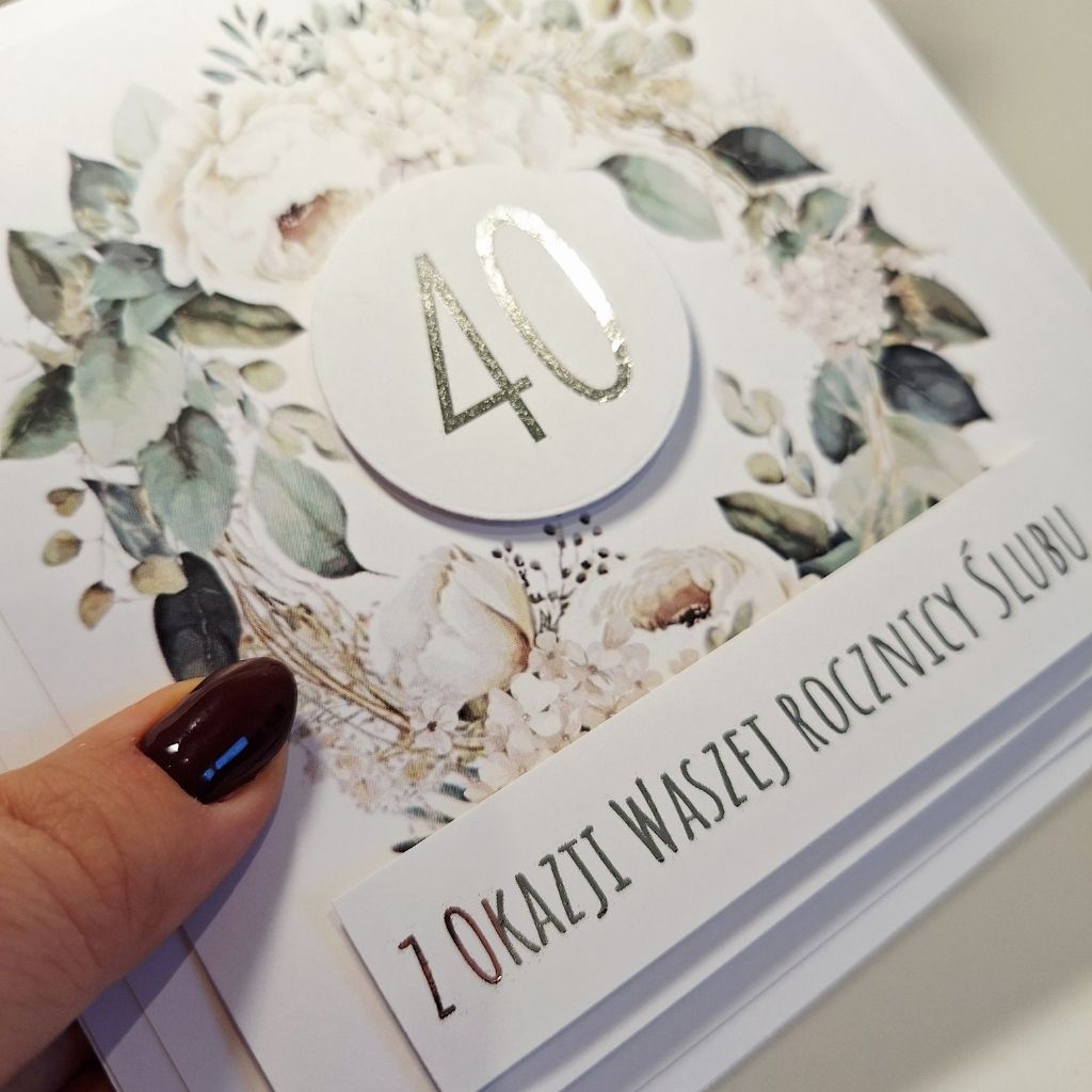 „Kartka Okolicznościowa – Z Okazji 40 Rocznicy Ślubu ” to elegancka, ręcznie robiona kartka, ze srebrnymi napisami, która pięknie podkreśli tę wyjątkową chwilę. Starannie dobrane kolory, subtelne zdobienia oraz elementy 3D nadają jej niepowtarzalnego charakteru. To idealny sposób, aby w wyjątkowy sposób przekazać swoje myśli i emocje – niezależnie od okazji.