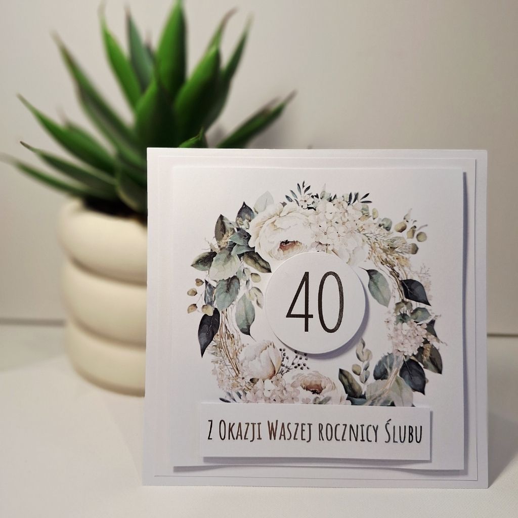 Napisz pierwszą opinię o „Kartka Okolicznościowa – Z Okazji 40 Rocznicy Ślubu – Biała piwonia”