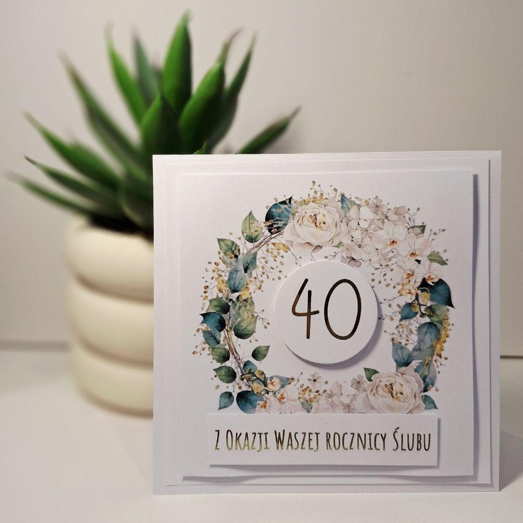 Kartka Okolicznościowa – Z Okazji 40 Rocznicy Ślubu – Biała