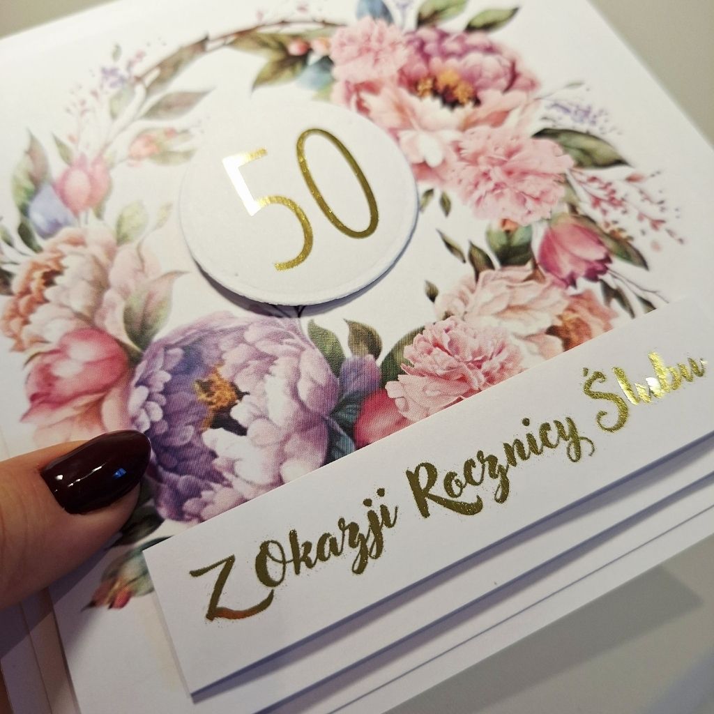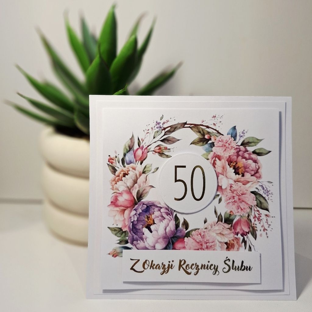 Napisz pierwszą opinię o „Kartka Okolicznościowa – Z Okazji 50 Rocznicy Ślubu – Fioletowa piwonia”