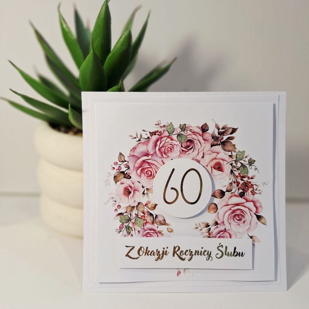 Kartka Okolicznościowa – Z Okazji 60 Rocznicy Ślubu – Róże różowe