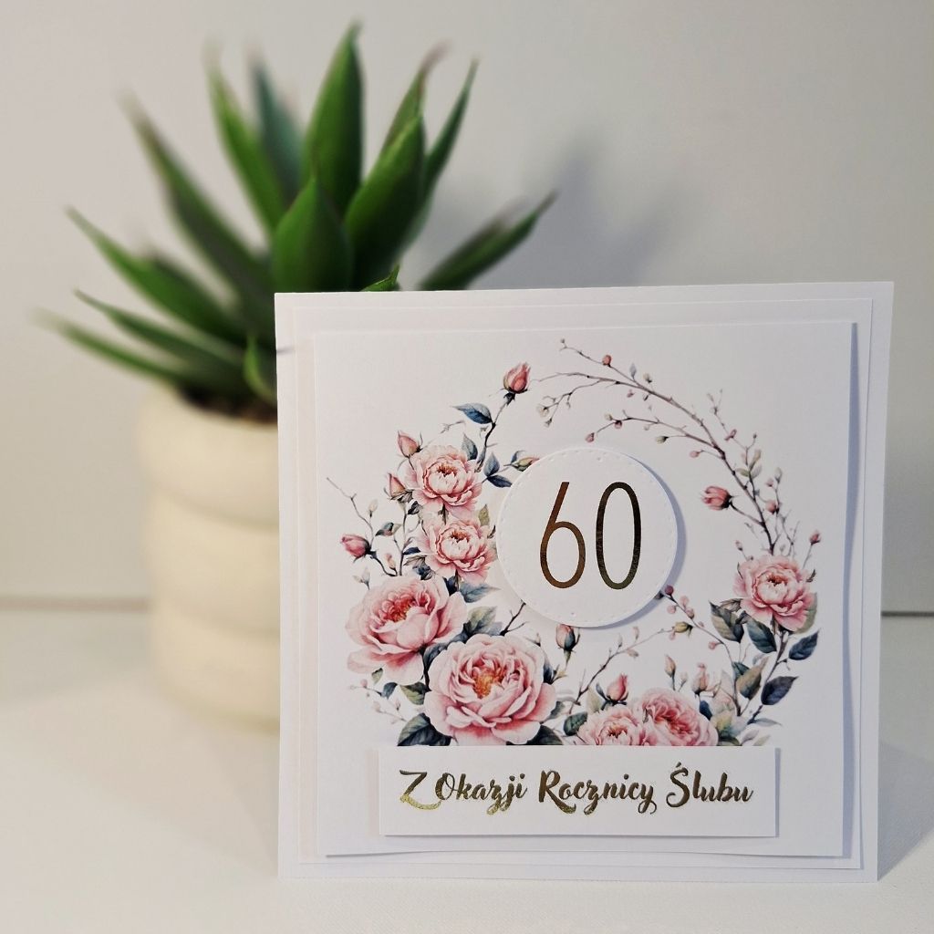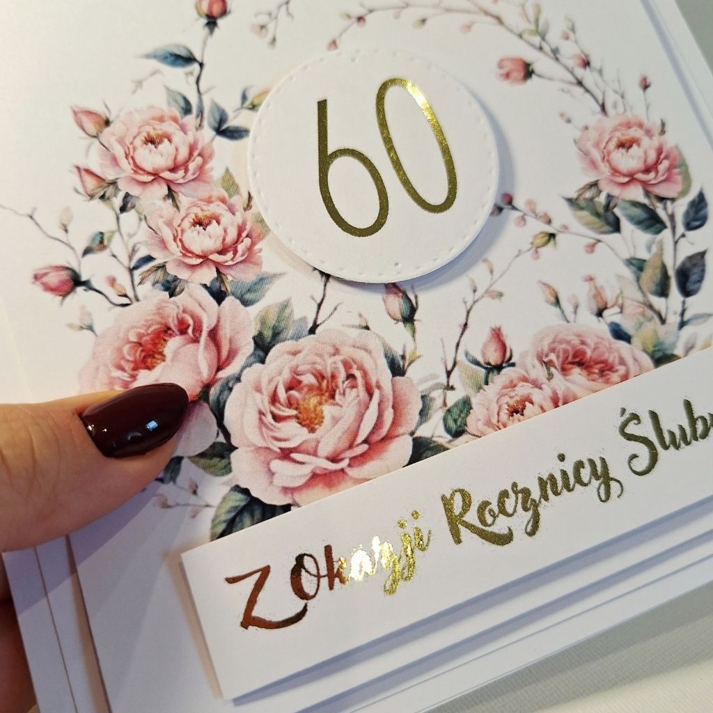 „Kartka Okolicznościowa – Z Okazji 60 Rocznicy Ślubu ” to elegancka, ręcznie robiona kartka, ze złotymi napisami, która pięknie podkreśli tę wyjątkową chwilę. Starannie dobrane kolory, subtelne zdobienia oraz elementy 3D nadają jej niepowtarzalnego charakteru. To idealny sposób, aby w wyjątkowy sposób przekazać swoje myśli i emocje – niezależnie od okazji.