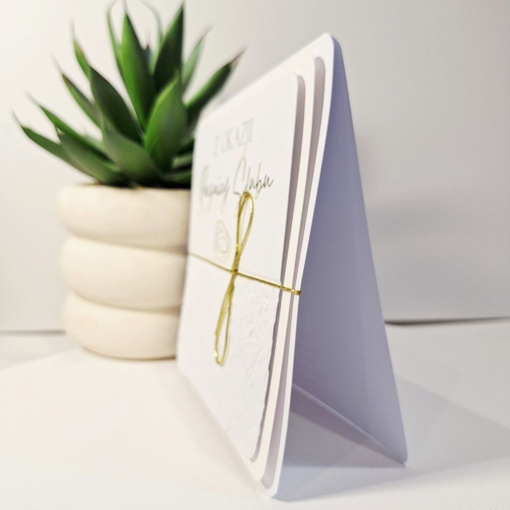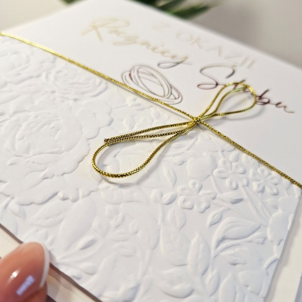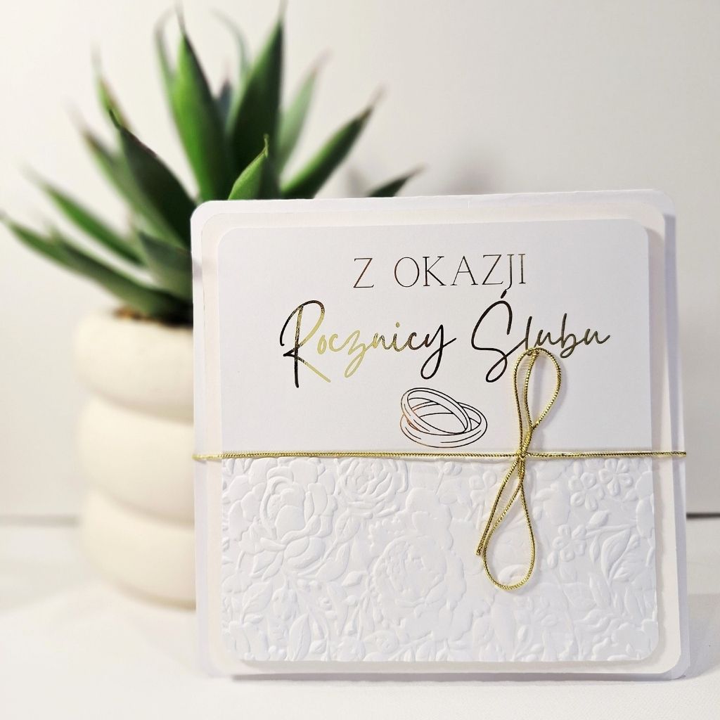 „Kartka okolicznościowa – Z Okazji Rocznicy Ślubu” to elegancka, ręcznie robiona kartka, która pięknie podkreśli tę wyjątkową chwilę. Starannie dobrane kolory, złocone napisy, subtelne zdobienia oraz elementy embossingu nadają jej niepowtarzalnego charakteru. To idealny sposób, aby w wyjątkowy sposób przekazać swoje myśli i emocje – z okazji Rocznicy Ślubu.