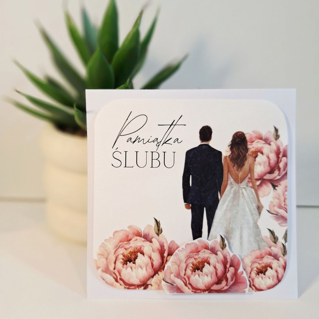 Kartka Okolicznościowa – Z Okazji Ślubu – Młoda Para – Piwonia Róż