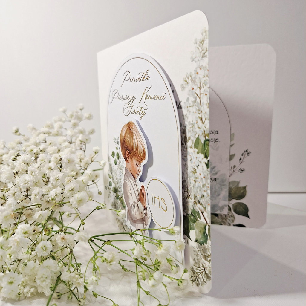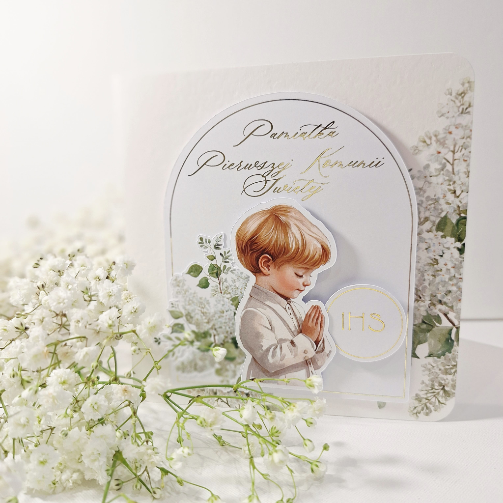 Kartka z okazji Komunii Świętej – Pamiątka Pierwszej Komunii Świętej -Chłopiec