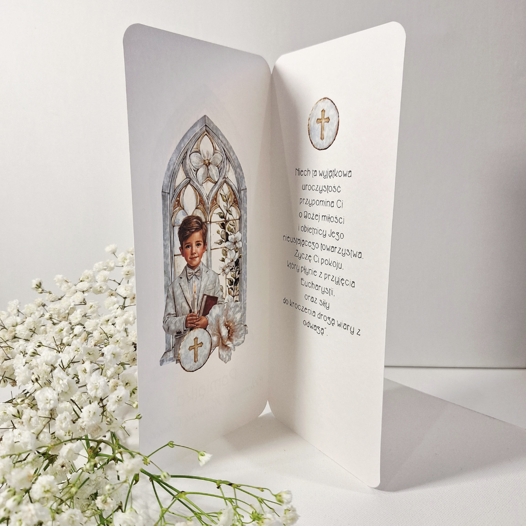 Kartka z okazji Komunii Świętej – Pamiątka Pierwszej Komunii Świętej – Chłopiec