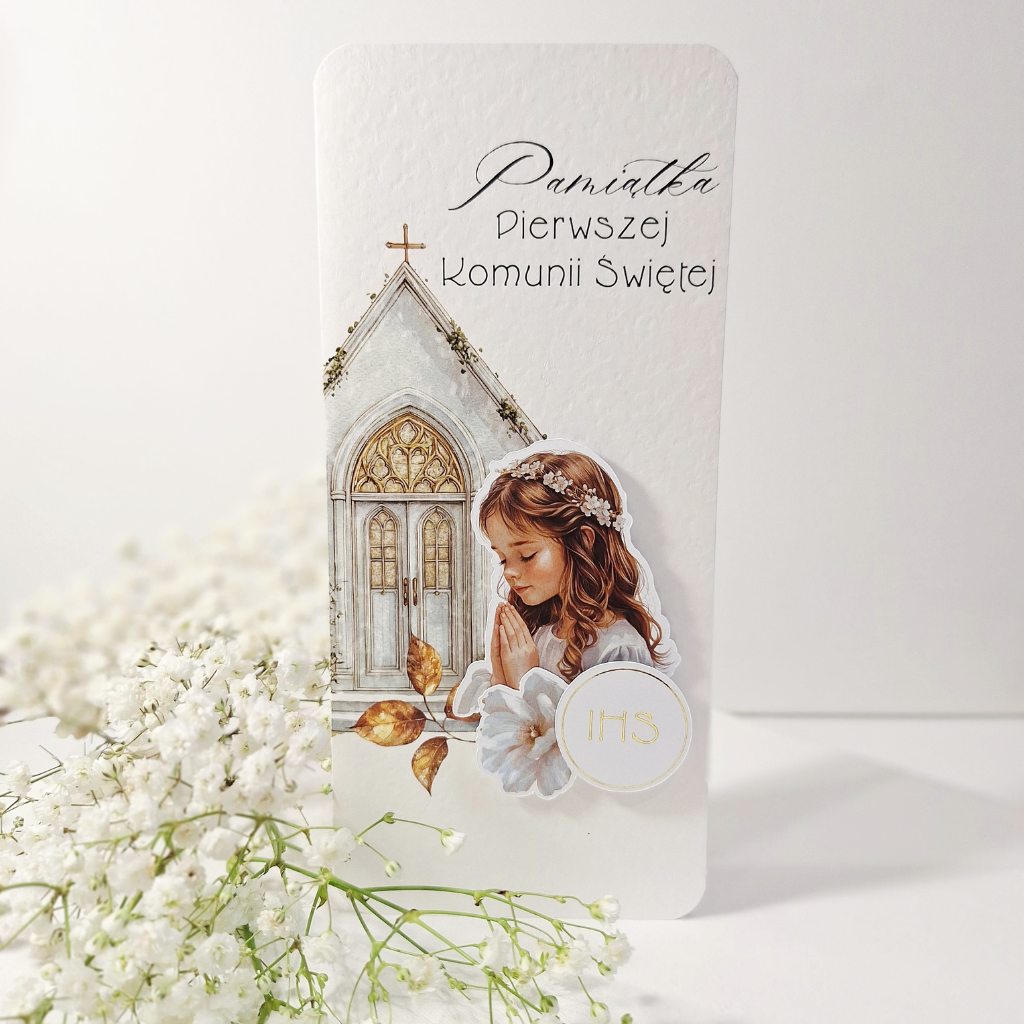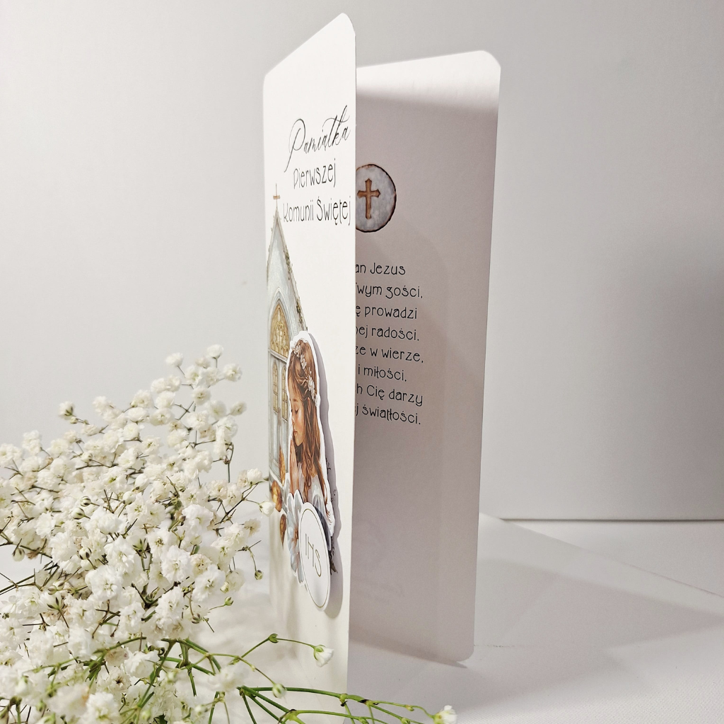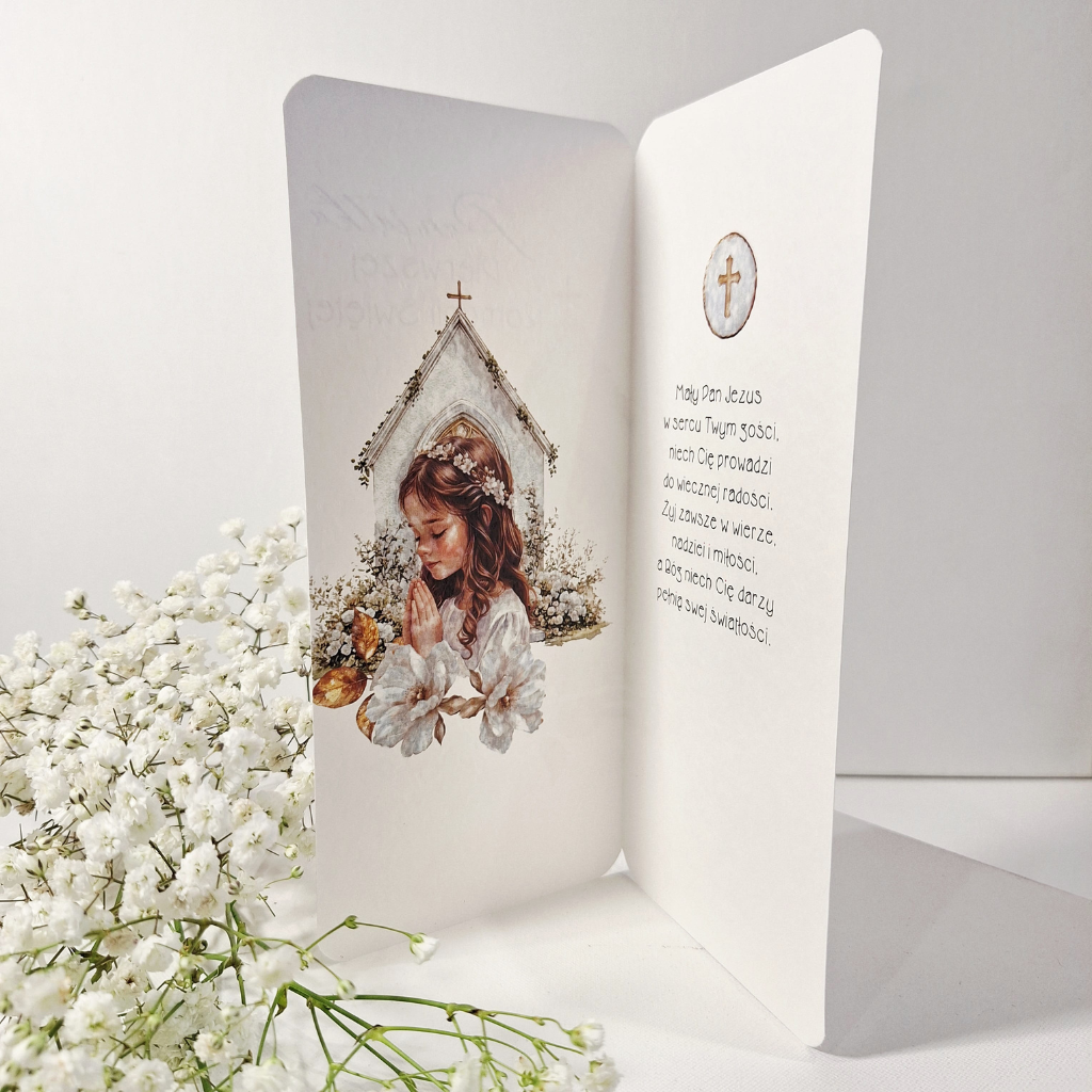Kartka z okazji Komunii Świętej – Pamiątka Pierwszej Komunii Świętej – Dziewczynka