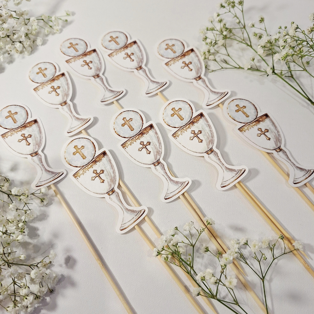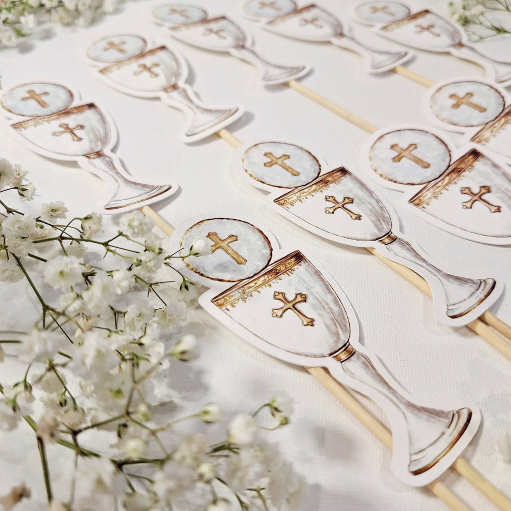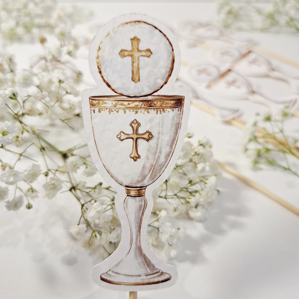 „Pik – Topper – Kielich z IHS”  to idealne dopełnienie każdego bukietu, flowerboxa czy rośliny doniczkowej z okazji Pierwszej Komunii Świętej. To mały detal, który zmieni kwiaty w personalny i niezapomniany upominek. Doda uroku każdej kompozycji i sprawi, że kwiaty będą gotowe do wręczenia na tę wyjątkową okazję.