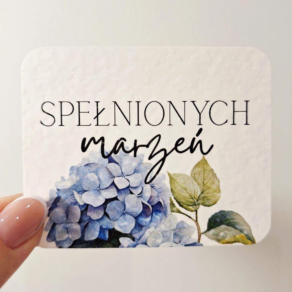 Plakietka – Spełnionych marzeń – Hortensja – 8 szt.